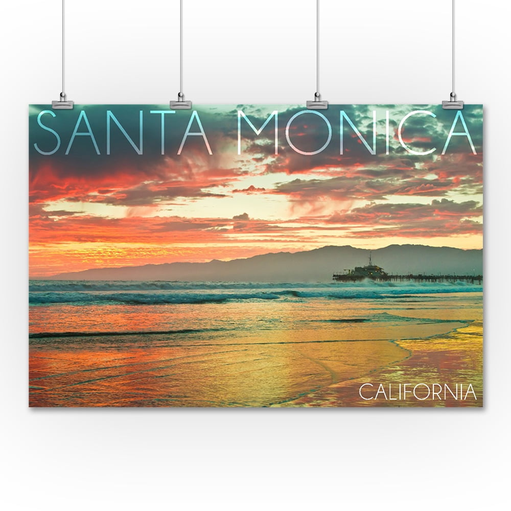 Santa Monica California Pier At Sunset Lantern Press Photography 9x12 Art Print Wall Decor Travel Poster Walmart Com